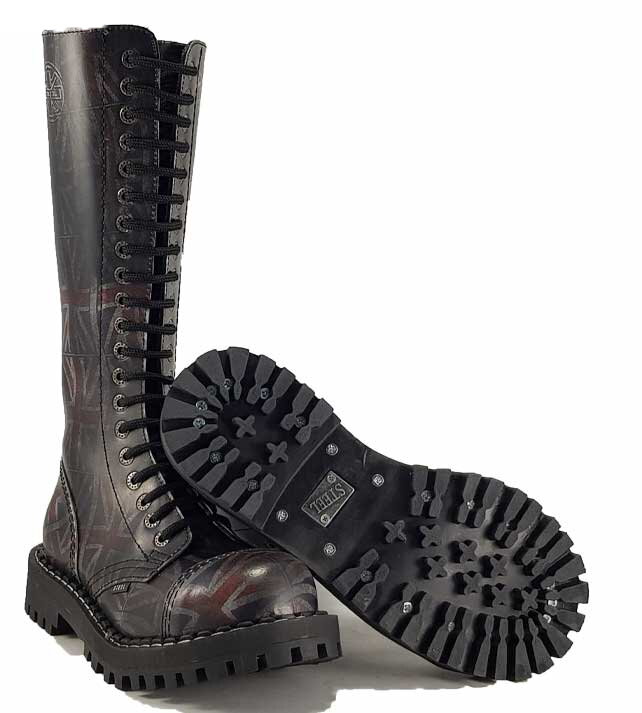 Steel Bakancs 15 Lyukú UK Zászló Koptatott